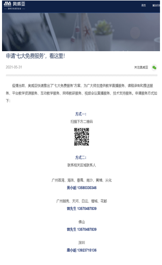 积极开展“我为群众办实事”活动,将党史学习教育成果转化为实际行动。广州爆发疫情期间,积极响应广州市教育局工作部署,针对广州市、佛山市等地区,推出教学直播、课程录制和推送、平台教学资源等“七大免费服务”方案,为“停课不停学”保驾护航。